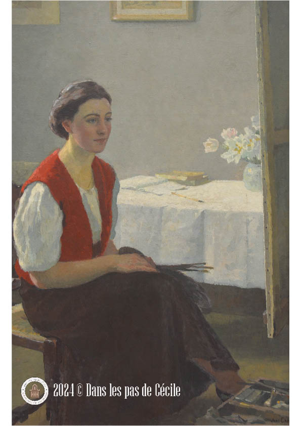 Marguerite Dubuisson, Vézelay : « Marguerite Dubuisson est issue d’une famille d’architectes et d’artistes occupant une place centrale dans la vie culturelle lilloise du début du 20e siècle. Avec son frère Émile et sa sœur Jeanne, elle étudie aux écoles académiques de Lille, suivant ainsi les traces de leur père. Formée dans l’atelier de Fernand Sabatté, elle y enseigne à son tour, dès 1933, un « cours d’arts appliqués pour jeunes filles ». Fidèle au genre de la peinture de paysage et de plein air, l’artiste présente régulièrement ses œuvres au Salon des artistes lillois. Elle se spécialise dans la peinture de paysage sur le motif et propose des descriptions réalistes et détaillées qui s’apparentent à des relevés architecturaux. Vézelay témoigne de son intérêt pour l’architecture et pour la représentation de paysages bucoliques. »