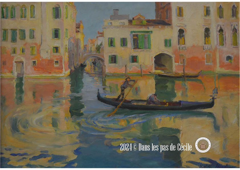Mathilde Hautrive, Vue de Venise, 1911 : « La trajectoire de Mathilde Hautrive est caractéristique de ces artistes femmes qui accèdent à la reconnaissance de leur vivant, mais pas à la postérité. Reçue en 1901 au concours de l’École nationale des beaux-arts, elle remporte différents prix et distinctions avant de devenir, en 1907, la première femme à obtenir le prix Wicar, concours organisé par la Société des sciences, de l’agriculture et des arts de Lille. Grâce à cette récompense, elle séjourne à Rome de 1908 à 1911 et y rencontre le peintre lillois Carolus Duran, directeur de la Villa Médicis, qui la prend sous son aile. C’est lors de ce séjour en Italie qu’elle exécute cette vue du Grand Canal à Venise. L’artiste voyage également au Maroc, en Tunisie ou en Grèce et peint des paysages mais aussi des portraits et des scènes religieuses ».