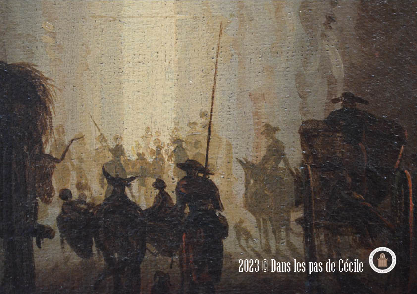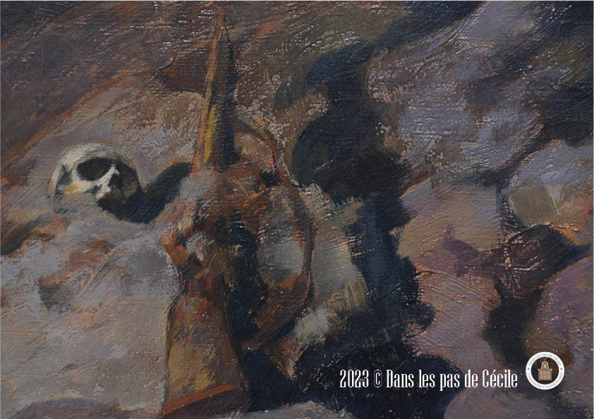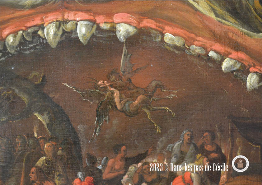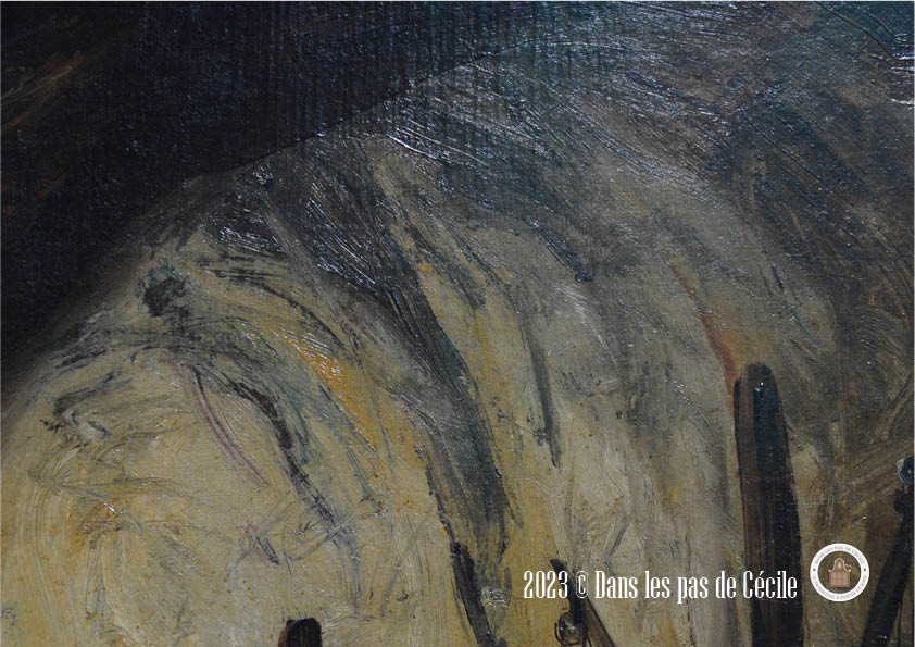 Comme le plus souvent, je me perds dans les tableaux coup de cœur, et j’ai été servi avec celui-ci. Il regorge de détails plus petits les uns que les autres et se cachant dans les différents plans. Mon œil voulait pouvoir tout regarder d’un coup d’œil et en même temps aller dans les moindres recoins.