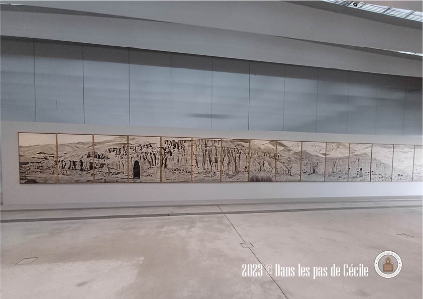 Cette œuvre mêlant bouddha set talibans me renvoie vers l’œuvre photographique présente dans la Galerie du Temps, intitulée Bâmiyân, la falaise et la grotte par le photographe Pascal Convert.