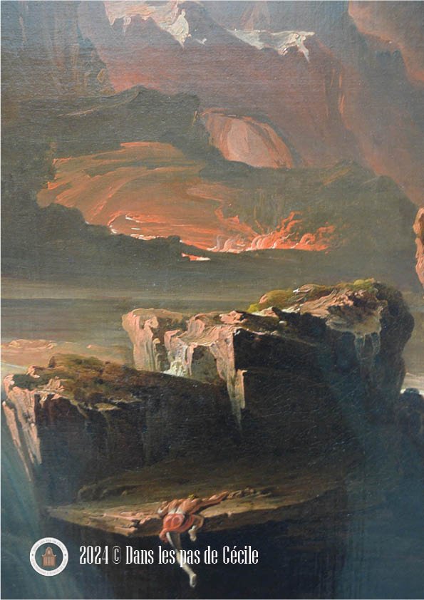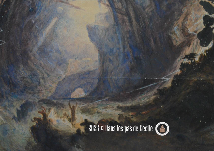 Cela fut également un plaisir de pouvoir admirer à nouveau un tableau de John Martin que j’avais découvert lors d’une précédente exposition sur le paysage au Louvre-Lens. Voici le lien vers l’article concernant cette exposition « Se fondre dans le paysage » : https://danslespasdececile.blog/2023/05/08/se-fondre-dans-le-paysage/