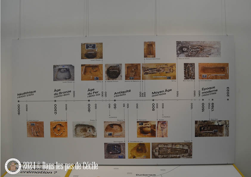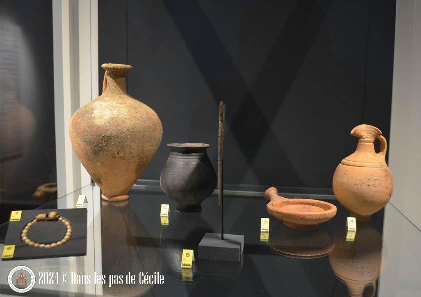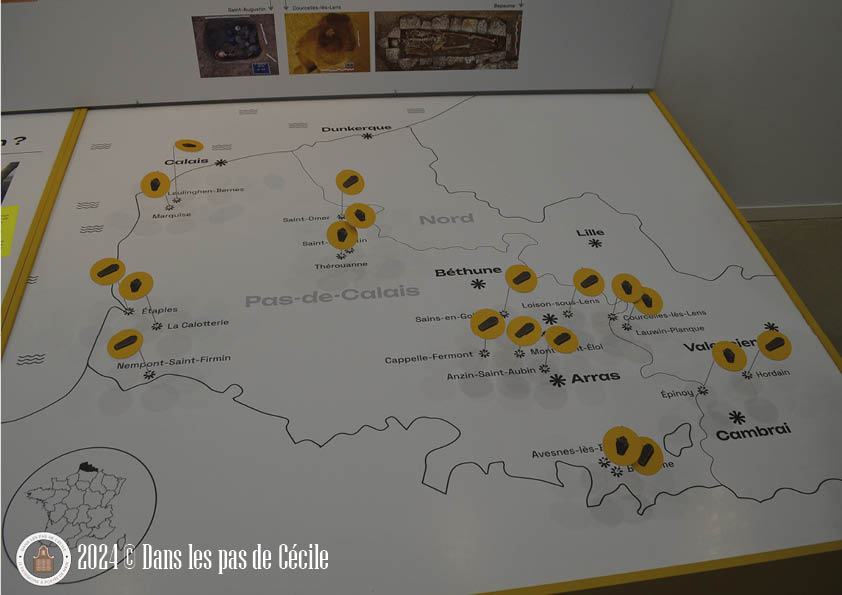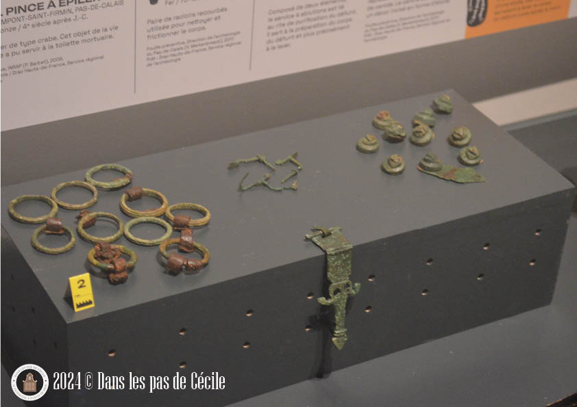 Voilà l’aperçu de l’exposition. J’ai beaucoup aimé parce que j’ai appris beaucoup de choses tout en utilisant des outils pédagogiques. Lors de ma venue, j’ai aussi eu l’occasion de découvrir le sarcophage de plomb de plomb qui avait été trouvé lors d’une fouille à Arras (dans le secteur du faubourg d’Amiens). Si cette découverte vous intéresse, je vous donne rendez-vous sur cet autre article du blog : https://danslespasdececile.blog/2024/11/30/du-plomb-comme-derniere-demeure/