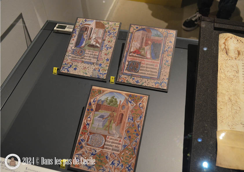 Celui qui est présenté reprend le chapitre concernant l’office des morts et il s’agit des reproductions d’enluminures que le visiteur pouvait apercevoir.
