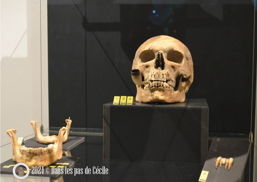 La dernière partie de l’exposition se consacre au volet laboratoire du métier d’archéologue. Parce qu’en effet, nous connaissons souvent les archéologues avec leurs pinceaux. Ils ont ainsi la mission d’identifier les objets récoltés sur le chantier de fouille. E, ce qui concerne l’archéo-anthropologue, il est en charge de déterminer l’identité et le vécu du défunt.