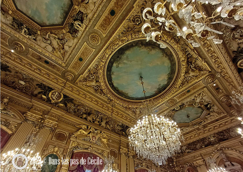 C’est à partir de 1862 que l’on procèdera à la réfection complète de ce salon. L’architecte s’inspira à la fois des décorations 19e siècle et de celles du salon du Consulat.