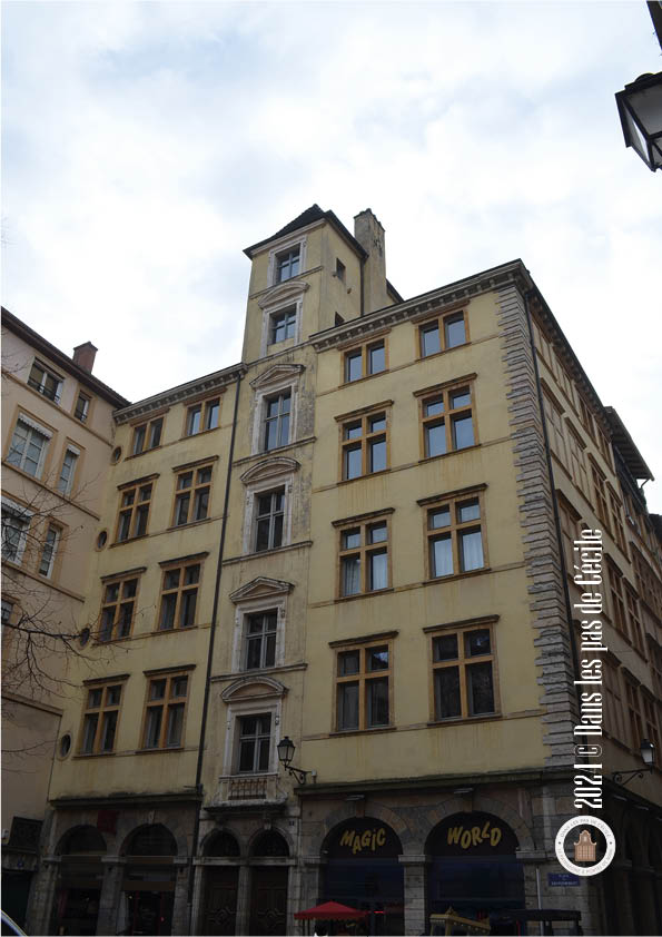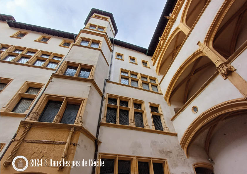 Quittons la place Saint-Jean pour se rendre dans la rue du même nom. Ce qui nous permet de passer à côté de l’hôtel de la Chamarerie. Le chamarier est le responsable de la surveillance. Cela lui permet d’avoir un œil sur la quartier des chanoines et de la primatiale. Le monument fut édifié au 16e siècle, mais la façade a été remaniée au 19e siècle avec un décor gothique.