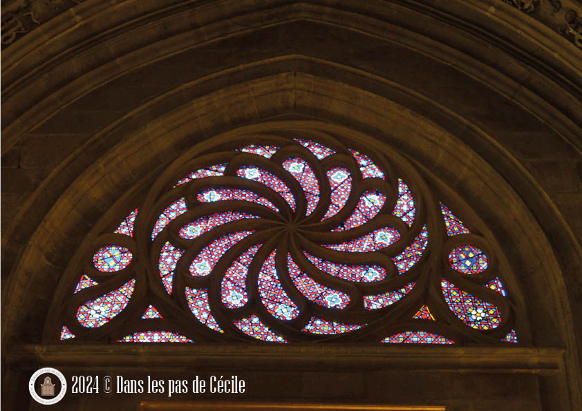 Les vitraux situés dans le chieur sont du 13e siècle mais on été très restaurés au 19e siècle. Concernant les roses, elles sont principalement du 13e siècle sauf celle de la façade qui est des années 1470 avec Jean Nivelle comme maître-verrier. Le vitrail le plus ancien du monument est celui de la chapelle Saint-Jean, datant de la fin du 12e siècle. Quant aux plus récents, ils datent de 2011 et ont été réalisés par l’atelier Jean Mône (atelier local labellisé Monument historiques).