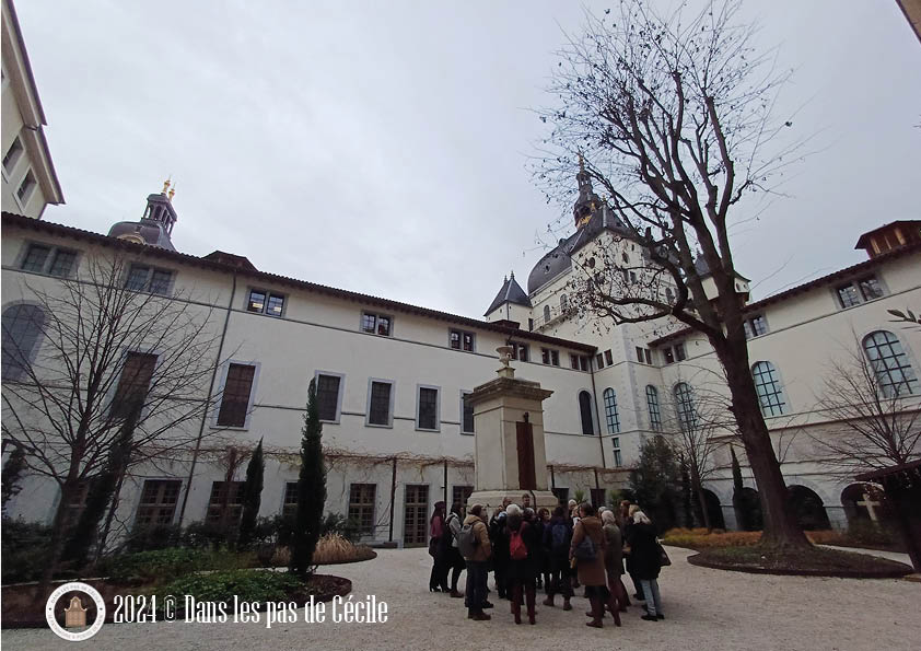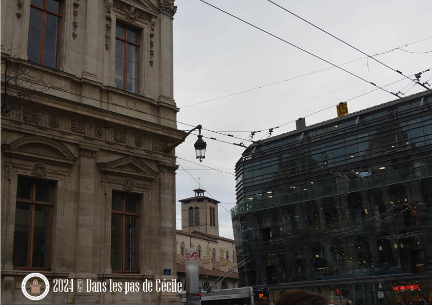 Après un repas bien copieux dans un bouchon lyonnais, il était temps d’éliminer un peu en se remettant en marche pour la dernière découverte au cœur de la ville. La collègue nous emmène en Presqu’Île pour nous faire trabouler encore un peu avant d’arriver à destination.