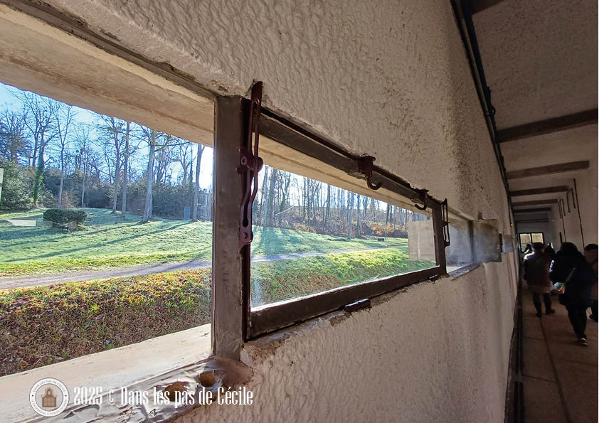 Nous ne pouvons certes pas entrer dans les cellules des frères mais nous pouvons emprunter ces couloirs de circulation qui donnent sur la façade extérieure.