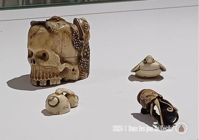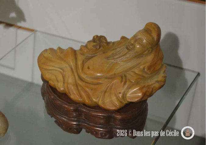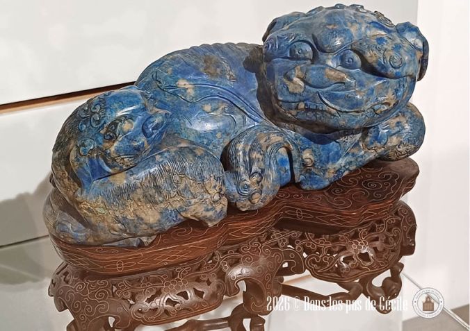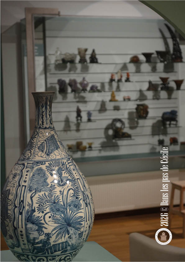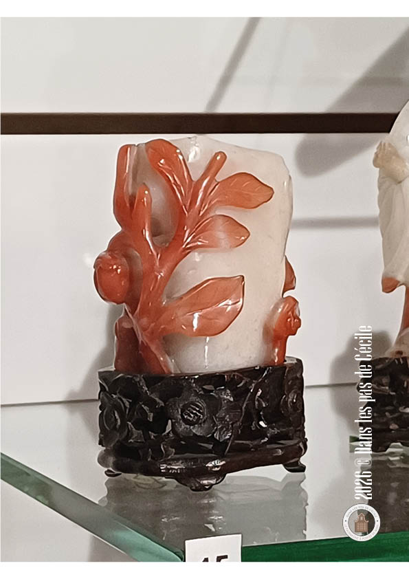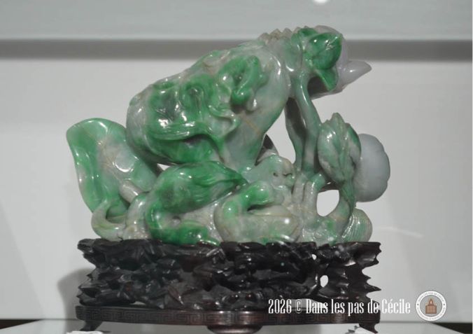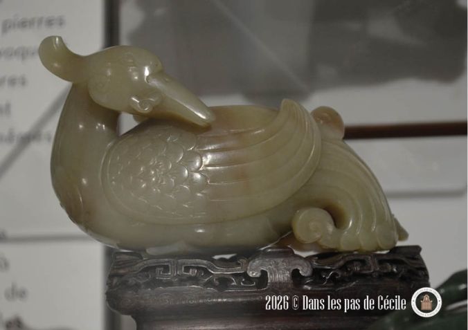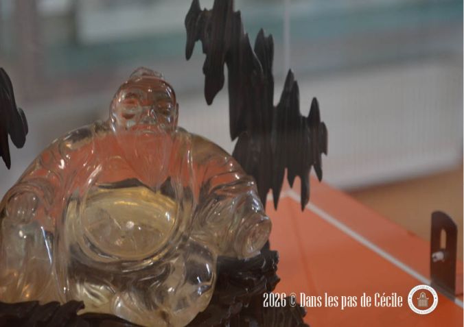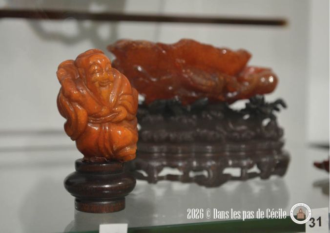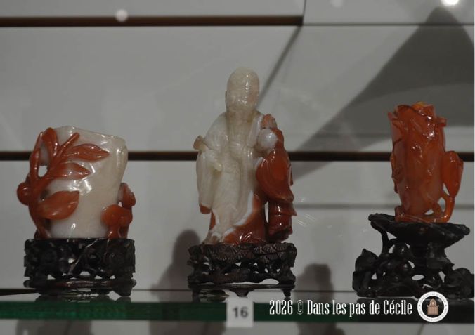 La prochaine vitrine était un véritable régal pour les yeux (enfin surtout pour les miens 😉) : elle était consacrée aux arts asiatiques, dépôt du musée des Beaux-Arts d’Arras, avec la Chine en guest-star aux côtés des pierres fines utilisées et sublimées par les artistes.