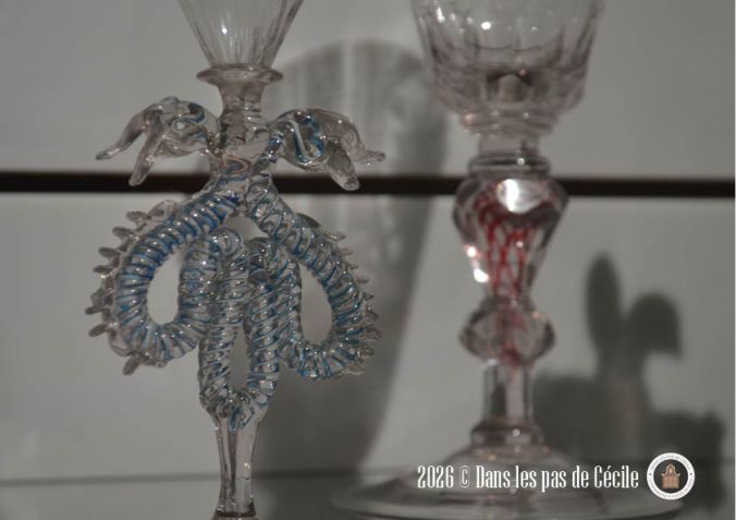 Tout comme une partie des armes métalliques nous avaient emmenés en Afrique, les vitrines suivantes nous emmenaient également en voyage à travers le monde. Ce qui nous permet de comprendre que la valeur d’un matériau peut être différente d’un pays à l’autre.